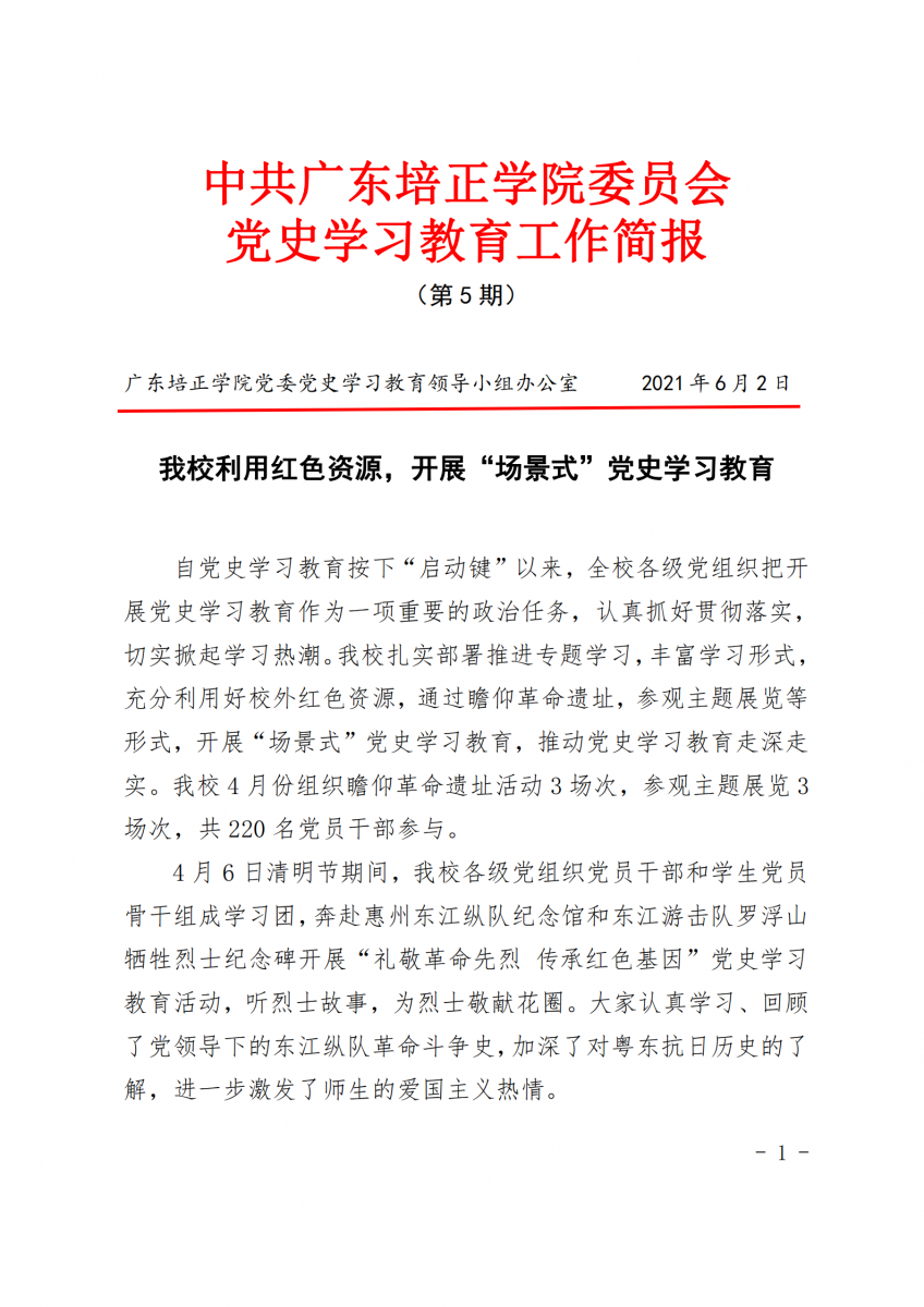 中共广东培正学院委员会党史学习教育工作简报(第5期)