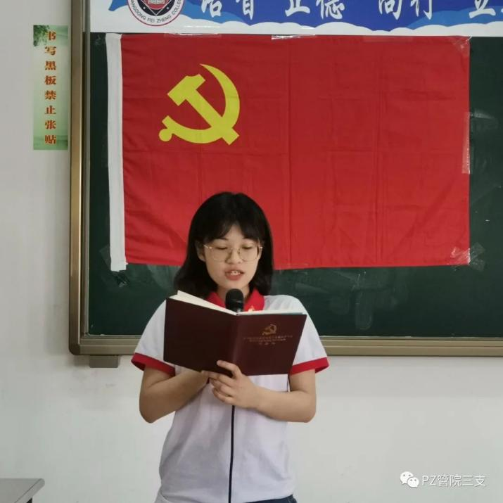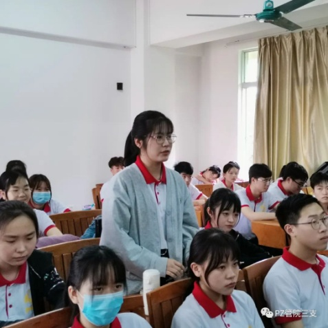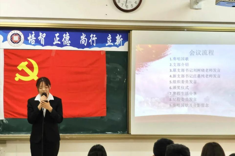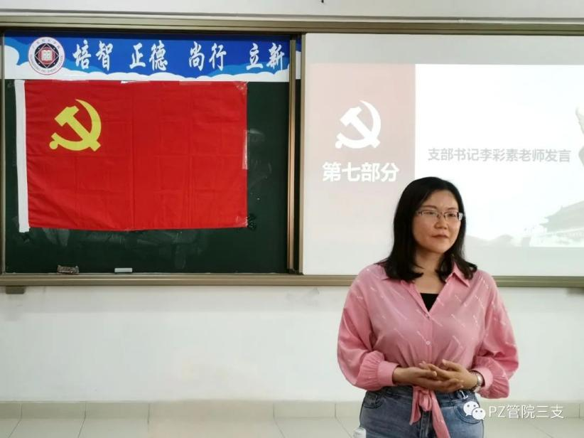 紧接着,支部书记李彩素老师对校规校纪进行强调,希望支部成员都起到模范作用,服从学校的管理和安排。其次,号召同学们要树立终身学习的观念,学习永远在路上,不断的更新自己,要积极主动的学习党章党史,关注时事政治,拥护党的领导,肩负时代责任。