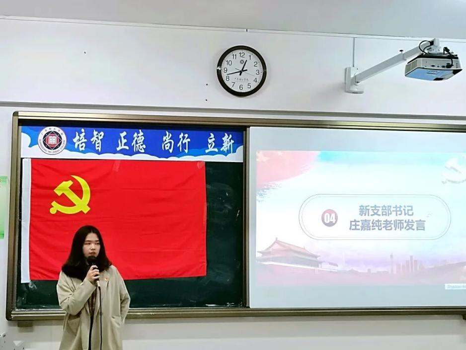 然后,新书记庄嘉纯老师对刘树晓老师表示感谢,并谈及对支部的认识。其中,为锻炼支部成员,确立未来目标有三:一提质量与数量,二提能力与效率,三抓思想与作风。同时希望成员们秉承“全心全意为人民服务”的宗旨,为社会贡献自己的力量,也是对支部的栽培的最好回馈。