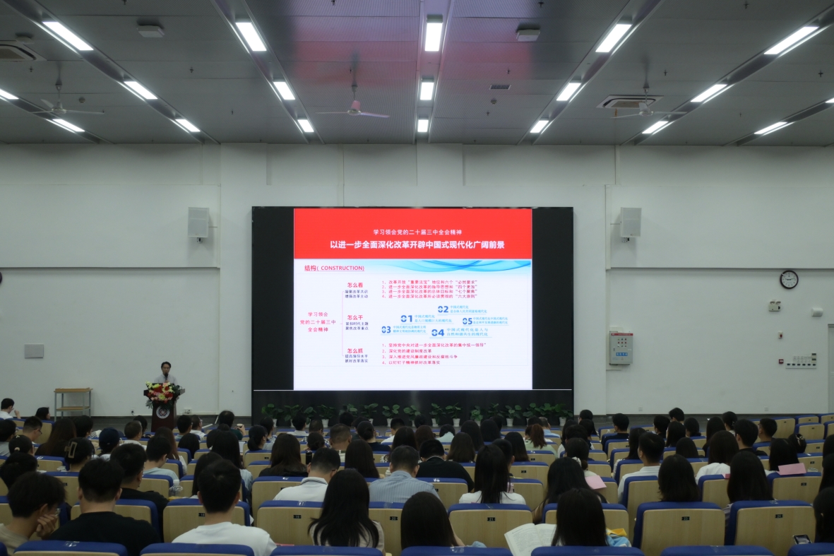 学生工作部黄海峰部长从“进一步全面深化改革的重大意义和总体要求”“聚焦重点在更高水平上进一步全面深化改革”“提高党对进一步全面深化改革的领导水平”三个方面,深入浅出地讲解了党的二十届三中全会精神。