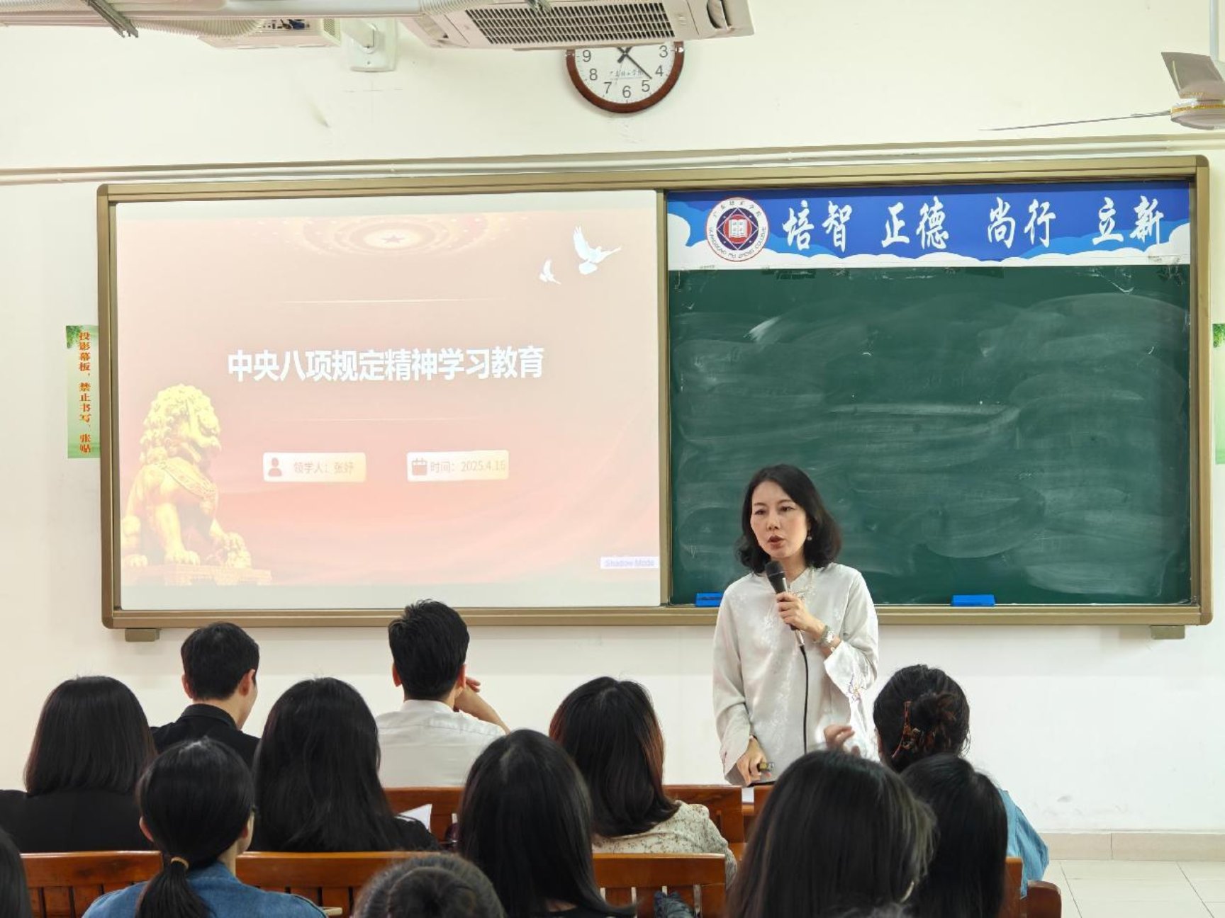 最后,学院党委书记陈橹要求全体教工党员和干部对照中央八项规定精神开展自我检视。他强调,党员教师要以更高标准严格要求自己,将纪律规矩内化为行动自觉,为营造风清气正的育人环境贡献力量。
