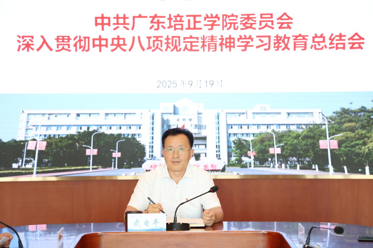 本网讯(党委办公室 郑菁华)9月19日,广东培正学院召开深入贯彻中央八项规定精神学习教育总结会,传达学习习近平总书记关于深入贯彻中央八项规定精神学习教育的重要指示精神,总结全校学习教育,研究部署推进作风建设常态化长效化工作。学校党委书记武电平,党委副书记/校长黄弢,党委委员/董事会秘书长马蓁等学校领导班子成员出席会议,全体党政领导干部、二级党组织书记、中层管理干部参加会议。会议由党委副书记邓惠主持。