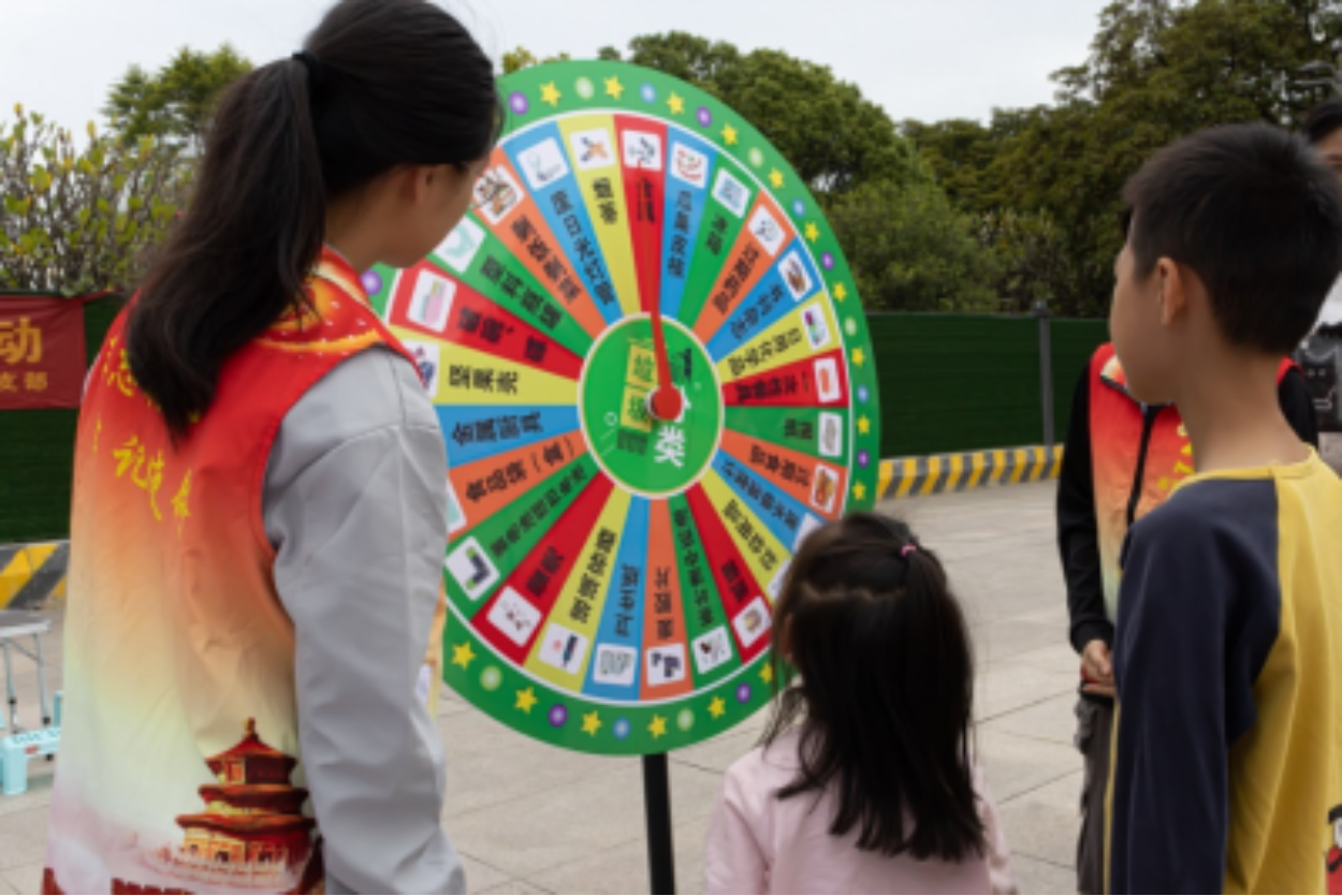 习近平总书记曾说:“绿水青山就是金山银山”。当今社会,培养青少年的环保意识已成为全社会共同的责任。为了让小朋友们了解正确的垃圾分类知识,从小培养他们的环保责任感,支部精心设置了垃圾分类的四个游戏摊位,包括环保知识飞行棋、垃圾分类猜猜看、垃圾分类连连看和垃圾分类大转盘等游戏。通过寓教于乐的宣传方式与孩子们进行知识互动,现场气氛热闹活跃,在轻松愉快的氛围中将垃圾分类知识潜移默化的渗透到家长与小朋友们的生活理念之中。