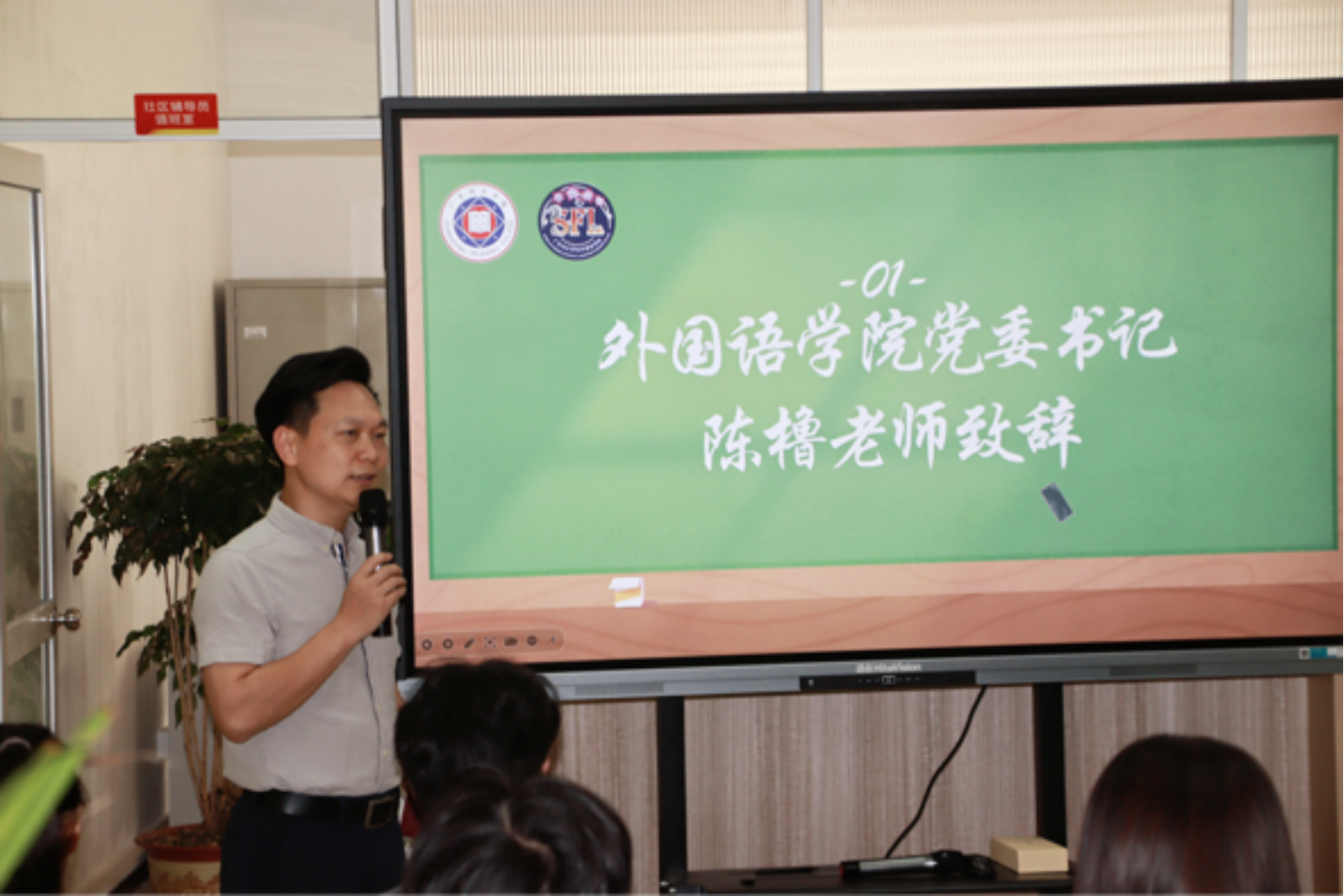 活动在外国语学院党委书记陈橹老师的致辞中拉开序幕。陈橹书记表示辅导员老师不仅是学生成长成才的人生导师,更是学生健康成长的知心朋友。他指出,“辅导员开讲啦”系列活动为辅导员发挥思想引领、价值引导、生活关怀及榜样示范等育人功能搭建了广阔平台,是学生亲近辅导员、接受思政教育浸润、了解公寓文化、享受“一站式”服务的重要桥梁,同时,陈橹老师也鼓励同学们积极参与后续活动,并预祝活动取得圆满成功。