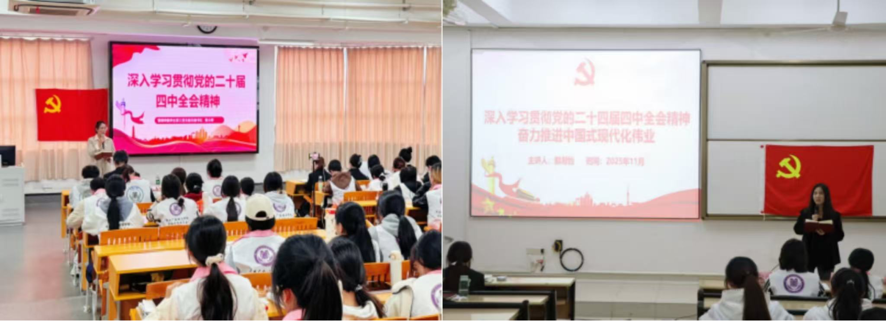 本网讯(管理学院党委宣传组 林佳琪)为认真贯彻落实习近平总书记关于深入学习领会党的二十届四中全会精神的重要指示精神,引导广大党员干部师生更加深刻领悟“两个确立”的决定性意义,增强“四个意识”、坚定“四个自信”、做到“两个维护”,推动党的二十届四中全会精神在我校落地生根。2025年11月以来,广东培正学院管理学院党委在全院范围内组织开展了形式多样、层次丰富的宣讲活动,取得了显著成效。
