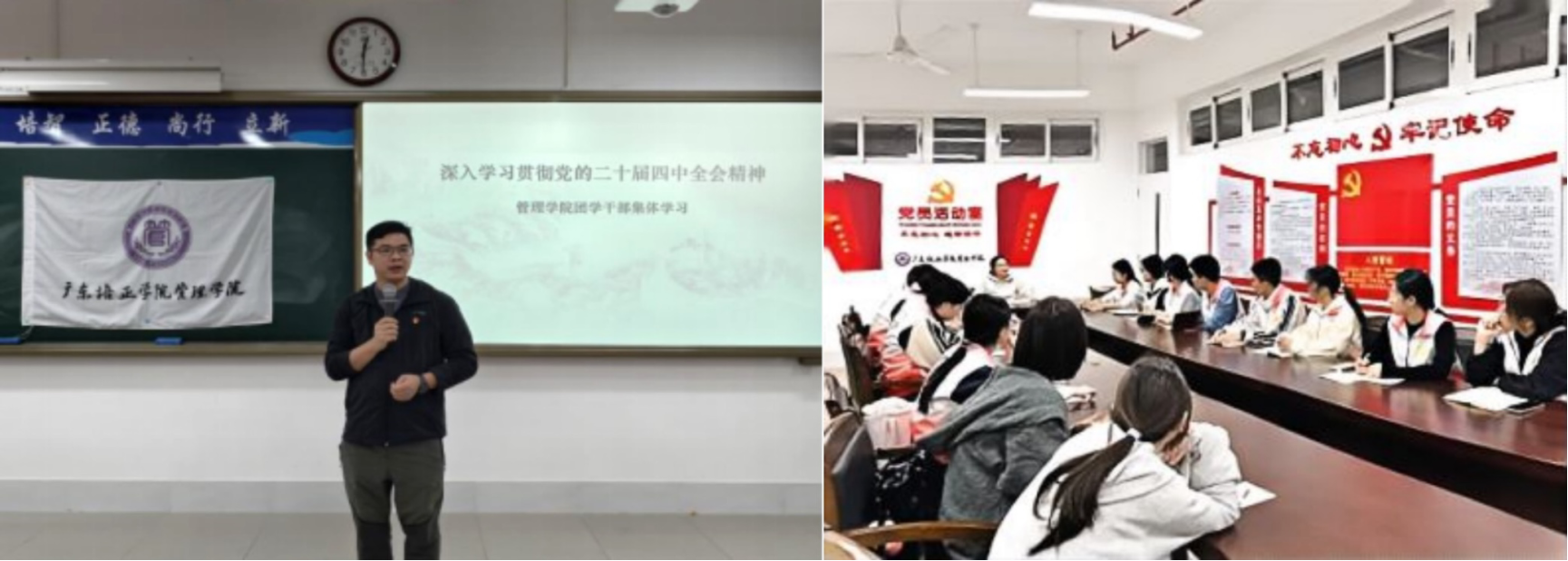 在学习贯彻党的二十届四中全会精神过程中,管理学院党委副书记曾营与组织委员罗莹积极发挥党委委员职能,协同开展组织协调与理论宣讲工作。他们聚焦全会精神,深入解读会议要义,引导师生深刻领会党中央决策部署,切实把思想和行动统一到全会精神上来。结合学院实际,两位委员面向团学干部和党务工作者,通过专题宣讲和培训,回顾“十四五”发展成就,讲解“十五五”规划及主要目标,强调将全会精神融入学生日常教育管理全过程,利用主题班会、团日活动、社会实践等形式,增强青年学生的历史责任感和时代使命感。同时,注重在组织建设中践行“改革创新”,提升工作效能,在实践中落实“高质量发展”要求。通过强化党务工作实务,筑牢政治根基,锤炼党务本领,严格落实“三会一课”等制度,立足管理学科特色创新工作方法,增强基层党组织的吸引力与凝聚力,共同推动全会精神在管理学院落地见效。