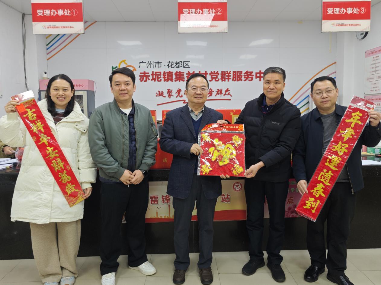 本网讯(党政办 陆倩茹)在2026年新春佳节来临之际,1月22日上午,学校校长黄弢带队,党政办公室-学校办公室主任曾小亮、基建与资产管理处职员罗慧等一行人随行,一同走进集益村委,代表学校向60岁以上长者及村社干部送上了新春佳节的利是和慰问品。
