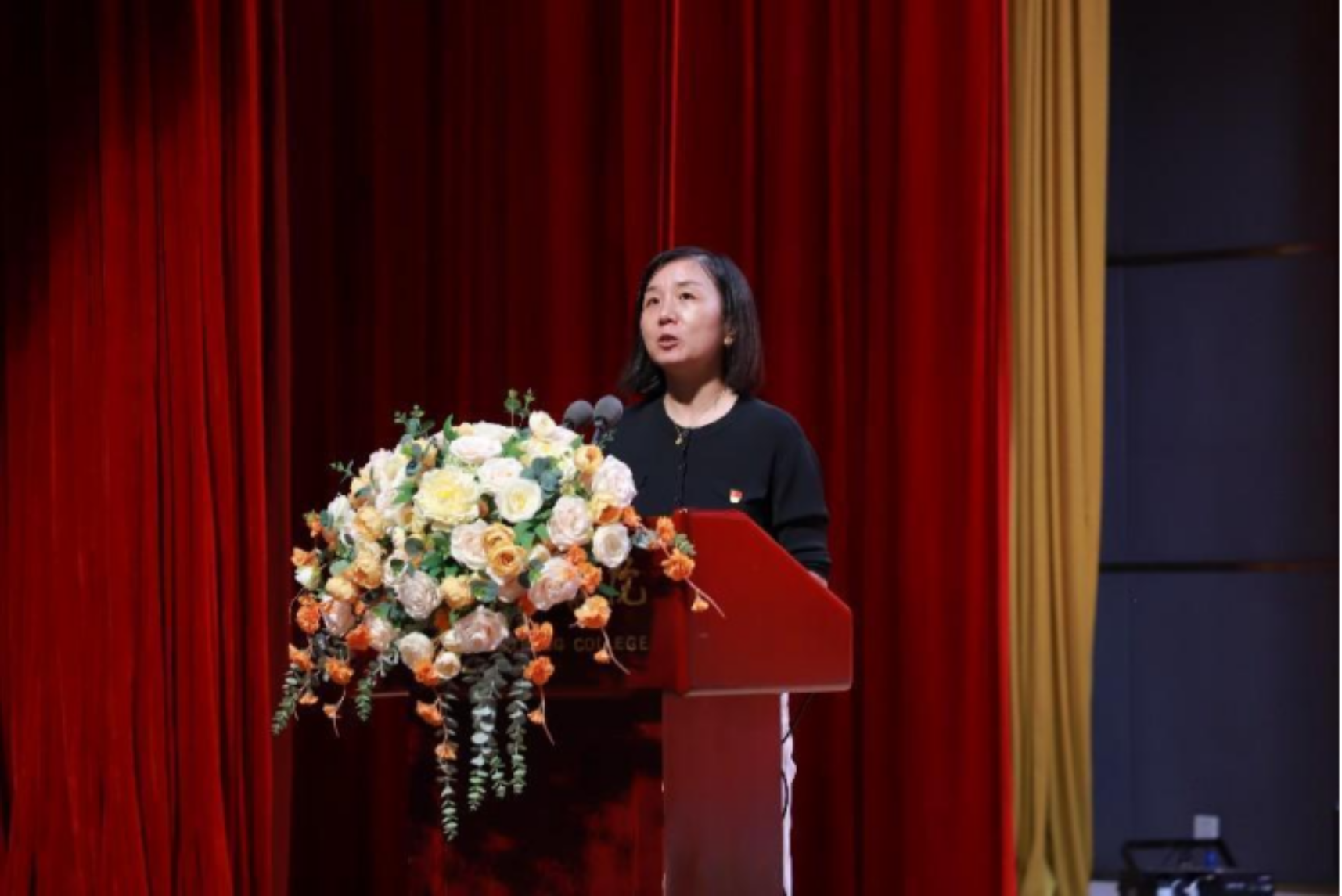 董事会马蓁秘书长为“课程思政优秀教学团队”代表颁奖