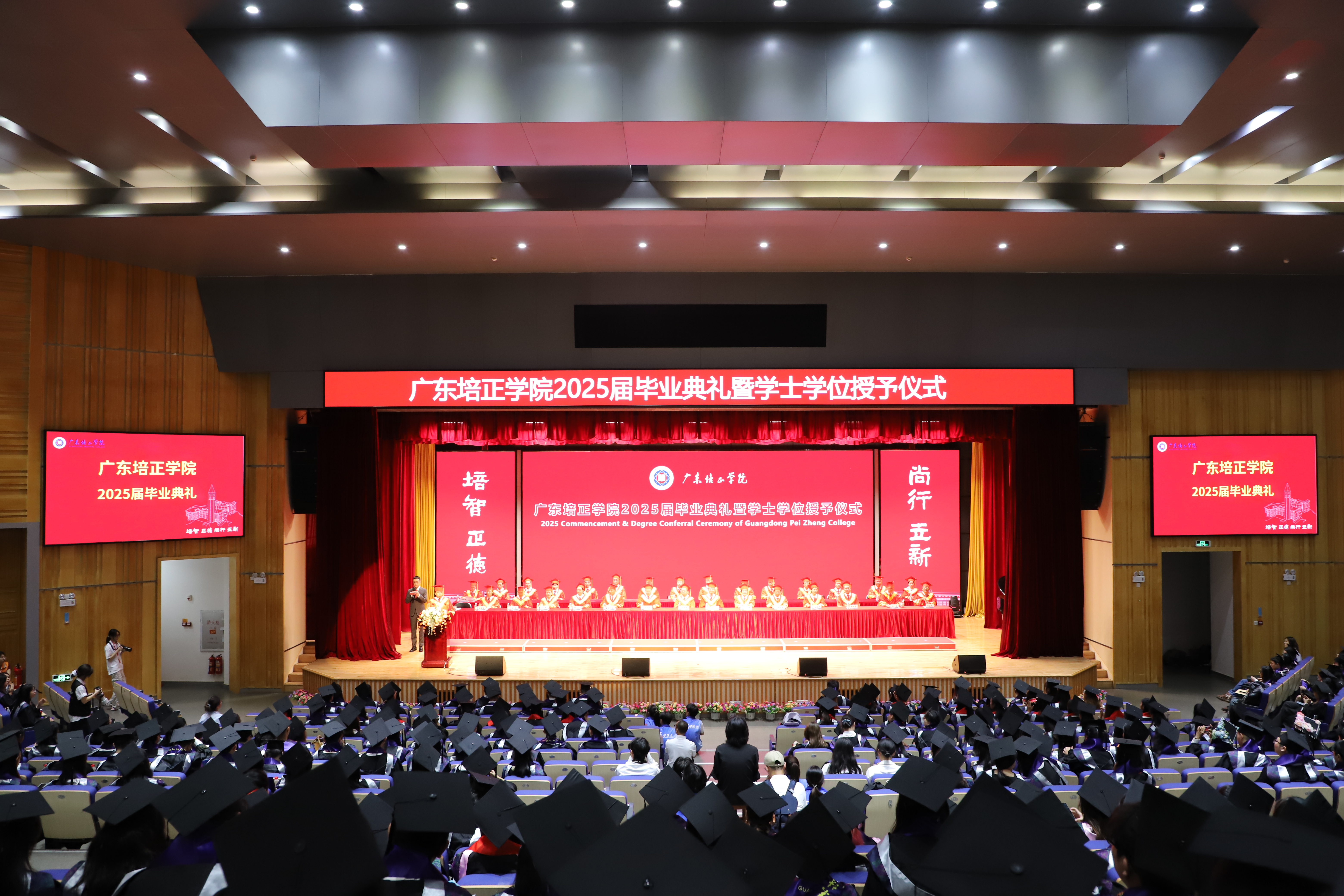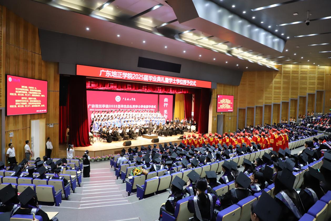 本网讯(图文 新闻中心学生记者团)广东培正学院2025届毕业典礼暨学士学位授予仪式于6月27日至6月29日在学校礼堂举办。全校8个学院的4752名应届毕业生在师生亲友的共同见证下,济济一堂,参与典礼。