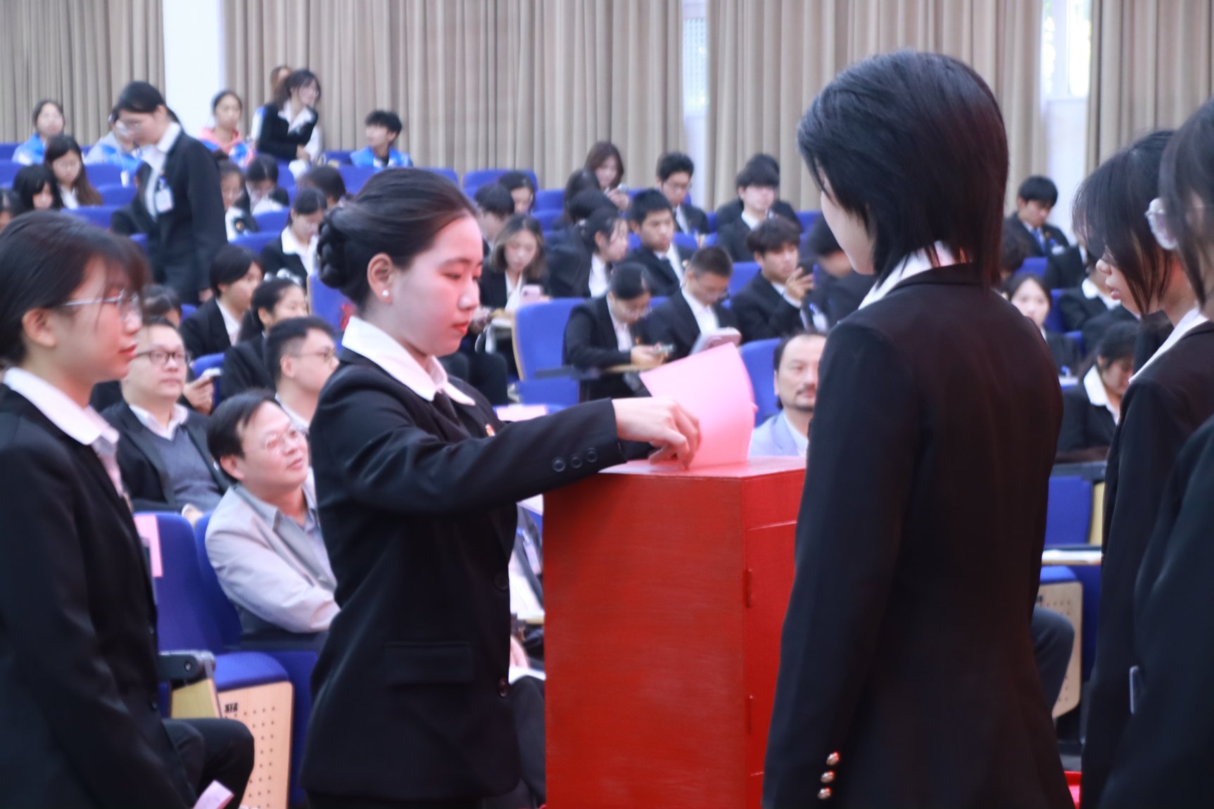 大会严格按照民主集中制原则,审议并全票通过《大会表决方法(草案)》《广东培正学院第二十五届学生会委员会工作报告》等6项文件。在选举环节,代表们严格遵守选举纪律,通过无记名投票方式,公平、公正、公开选举产生新一届学生会领导机构: