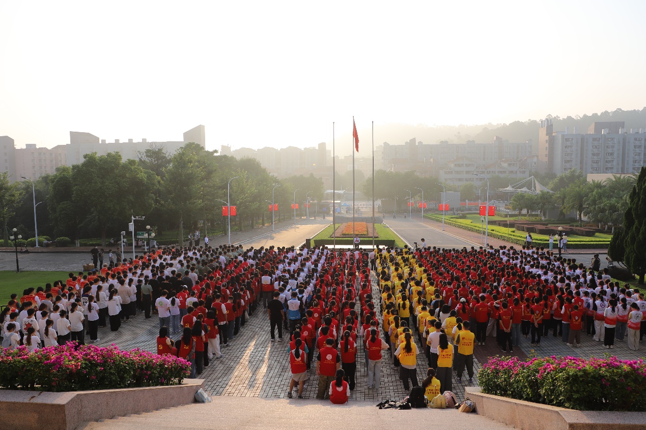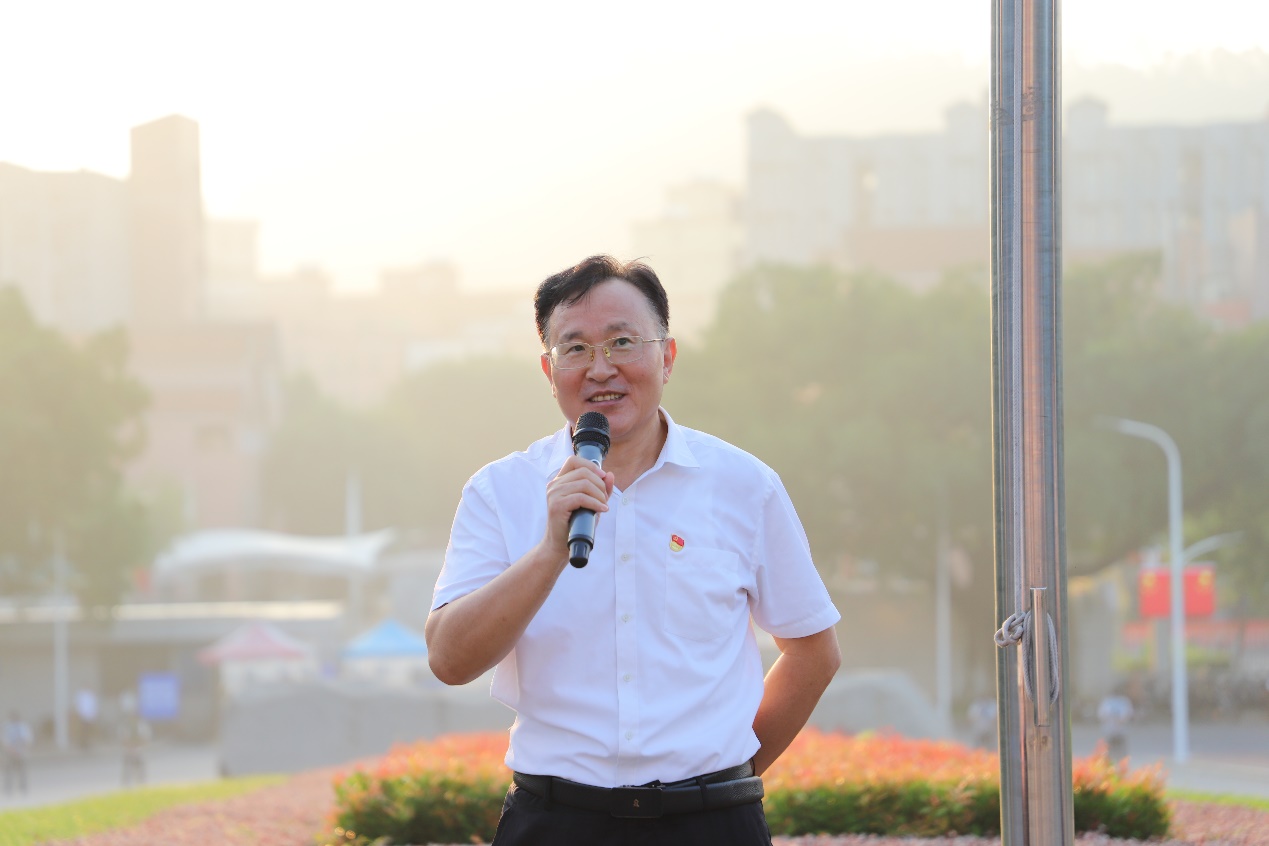 (党群工作部 丘文苑 林诺雯)时序更替,华章日新。为庆祝中华人民共和国成立75周年,9月30日清晨,我校在一教前举行由学校党委主办,机关党委、武装部承办,机关党委师生联合党支部协办的“缅怀革命先烈 喜迎祖国华诞”升国旗仪式。学校党政领导、各二级党组织书记、党员代表、第六期青马班学员等一千余名同志共同参加了升旗仪式。
