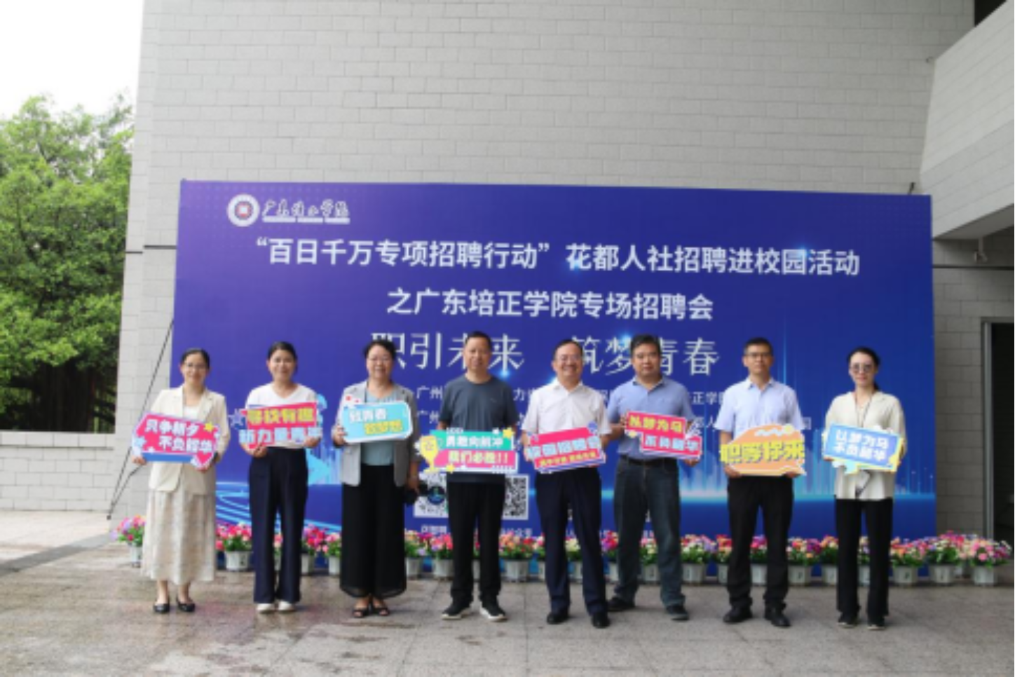 本网讯(招生就业处 林佳锋)为积极做好我校毕业生就业工作,搭建毕业生与用人单位之间的就业平台,由广州市花都区人力资源和社会保障局、广东培正学院主办,广州市花都区劳动就业服务管理中心、广州花都人才发展有限公司承办的“百日千万专项招聘行动”花都人社招聘进校园活动之广东培正学院专场招聘会于2025年6月28日上午在广东培正学院隆重举办,为即将远航的广东培正学院学子们铺就了从校门到职场的 “最后一公里”坦途。