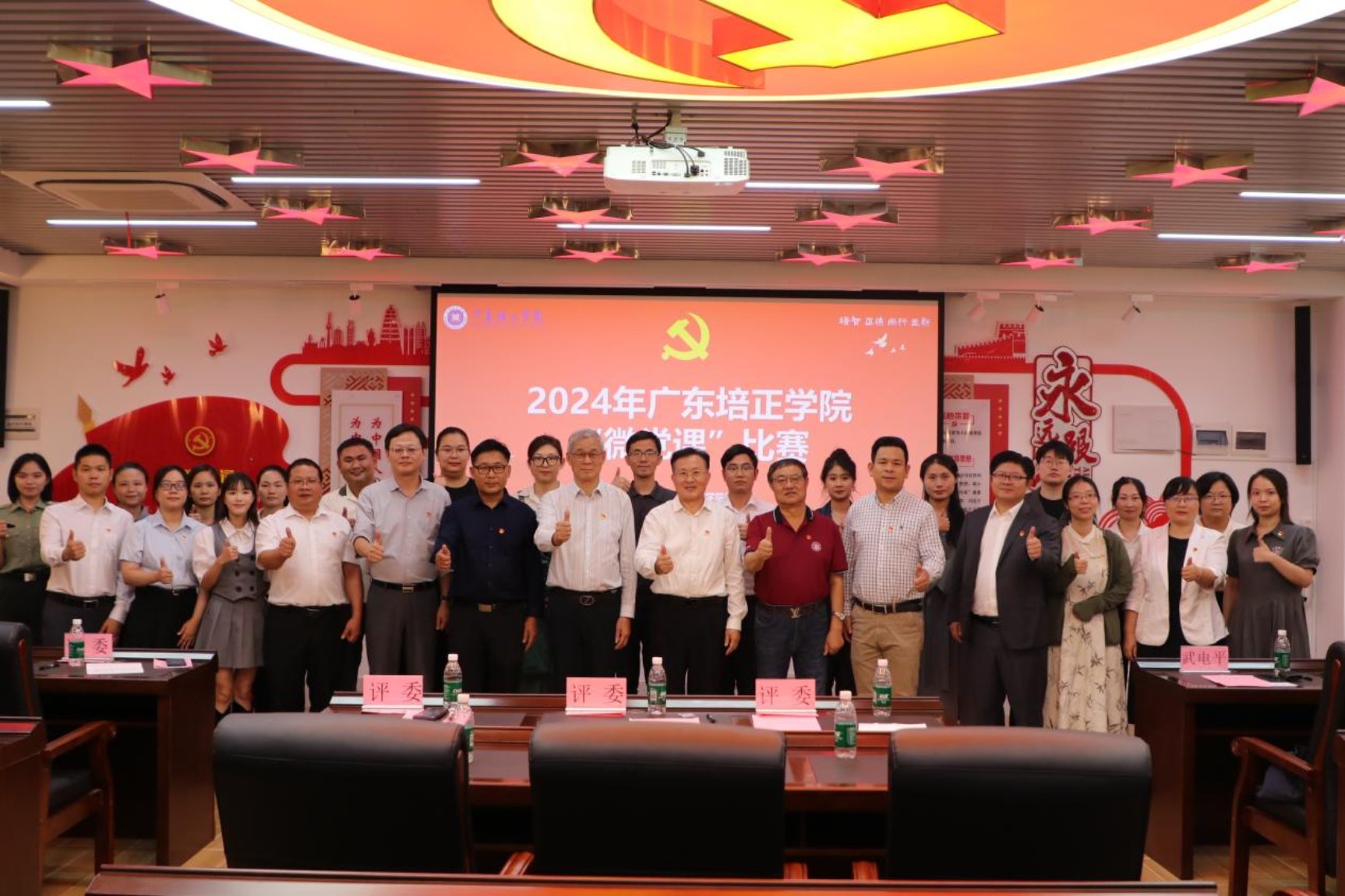 学校党委书记武电平对本次微党课比赛进行总结讲话。他表示,微党课比赛非常圆满,现场气氛热烈而庄重,参赛选手们精神饱满,党课内容鲜活生动,非常富有感染力,充分展现了新时代培正人的精神风貌。他要求学校各级党组织和广大党员干部:一要深入学习贯彻党的二十届三中全会精神,守好意识形态安全阵地;二要强化基层党组织建设,充分发挥党员师生的政治引领作用;三要进一步提升围绕中心抓党建的工作意识,推进党建与迎评工作双融双促,为推进教育强省、教育强国建设做出培正应有贡献。