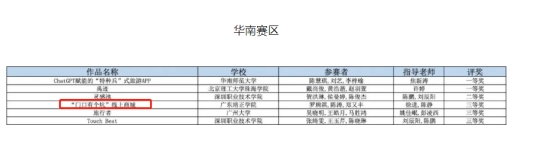 其中,我校共有2支队伍分别在创新赛道和创意赛道获华南赛区三等奖,获奖队伍人员如下: