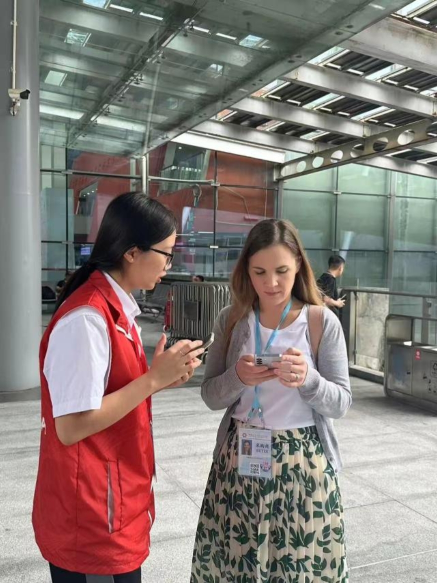当日下午2时许,学院领导一行深入各实习场景,细致观察学生工作状态与岗位适配情况。在参展企业摊位,外国语学院学生以流利的外语与外商开展产品介绍、订单洽谈等工作;在“贸易之桥”服务站点,学生们高效化解中外客商语言沟通障碍,完成信息匹配与业务对接;在国际票务部门,学生们为外商协调国际航班、中国高铁、市内交通及酒店等无缝衔接;在广交会会务APP应用现场,学生们耐心协助外商解决使用难题……200余名学子覆盖14类岗位,全方位展现了培正学子的专业素养与职业风采。