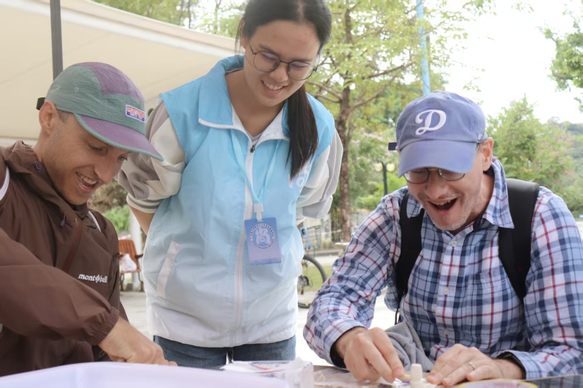本网讯(国际交流与合作处 何楚红)近日,在学校北区篮球场上,花香与笑语交织,一场别开生面的植物拓印手工活动在尚行少年宫和文化交流协会组织下温馨开展。师生们走出课堂,走进自然,用简单的工具将花草的肌理与色彩定格在布料上,在动手实践中感受自然之美、体验跨文化艺术的独特魅力。