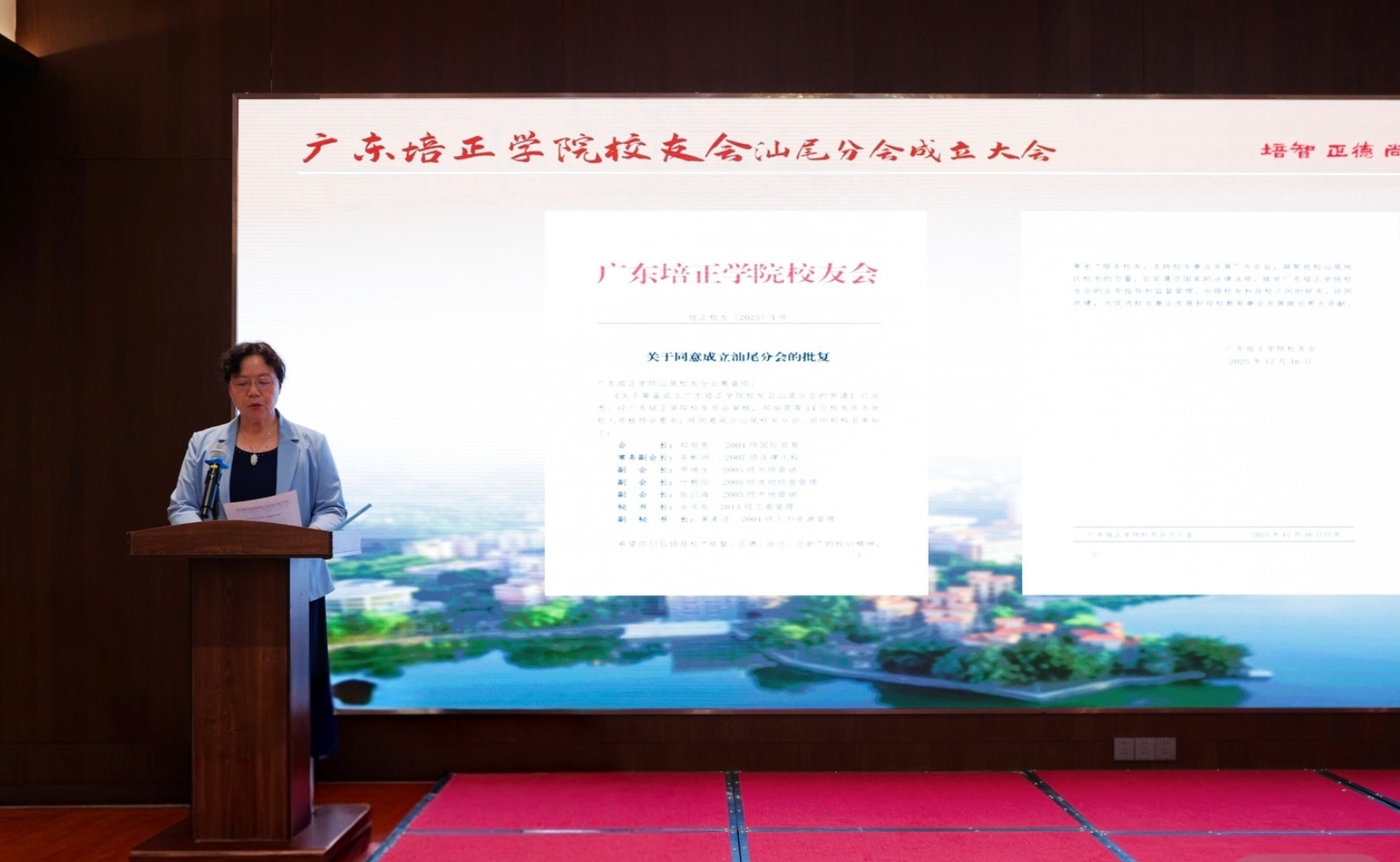 随后,副校长、校友总会常务副会长程玮宣读《关于同意成立广东培正学院校友会汕尾分会的批复》文件。她寄语分会坚守“服务校友、赋能母校、服务社会”的宗旨,切实发挥桥梁纽带作用,成为汕尾校友的“精神港湾”。
