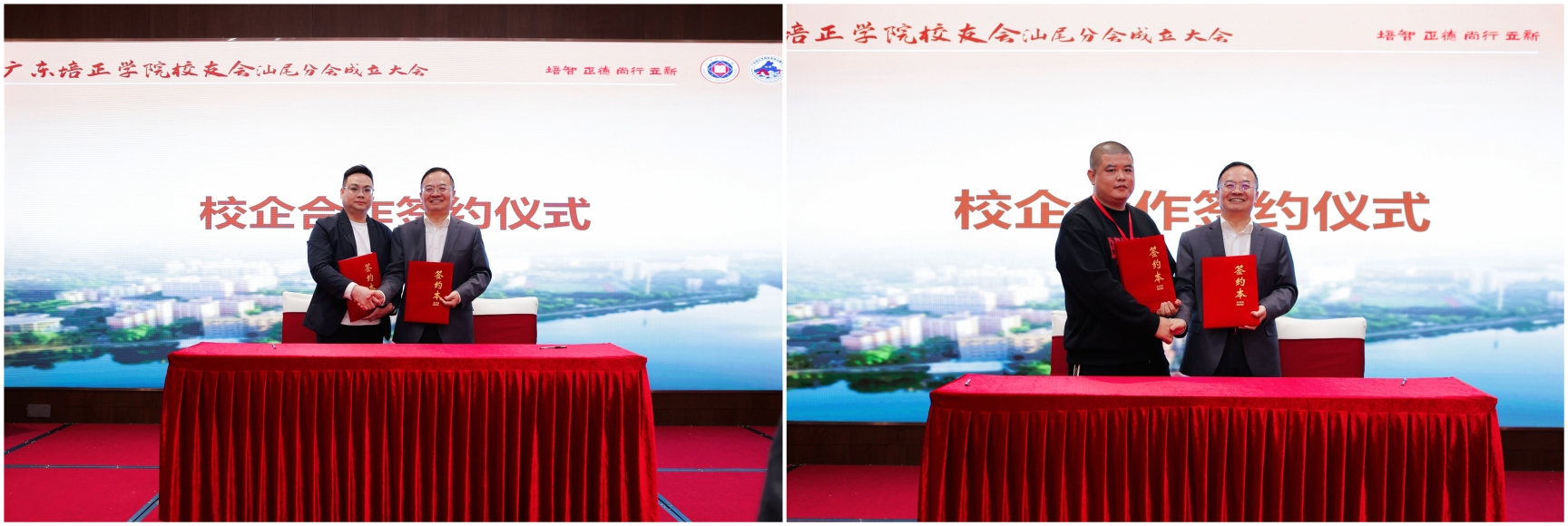 本次大会同期举行校企合作签约仪式。我校与吕俊炀校友企业(汕尾市泓信会计服务有限公司)、吴彬洲校友企业(广东国润城市运营服务有限公司),签订合作协议。根据协议,双方将在实习实训基地建设、优质课程共建、精准就业推荐等领域深化合作,推动“校友情”向“发展力”转化,实现校企双向赋能、协同发展。
