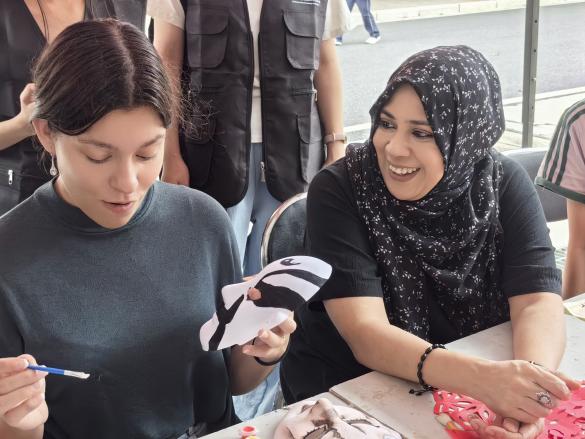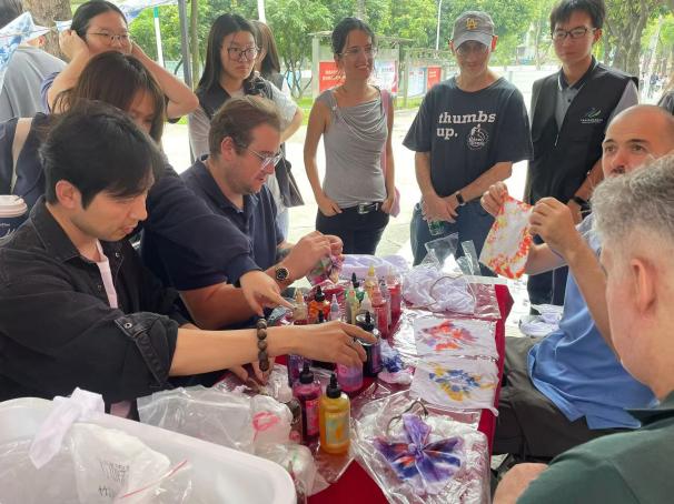 本网讯(国际交流与合作处何楚红)近日,“国韵新声”传统艺术体验工作坊活动如期举行。来自美国、英国、加拿大、西班牙等国家的15名外籍教师走出课堂,与师生们一同体验写书法、画中国画、剪纸、绘制京剧脸谱、扎染等,在沉浸式体验中感受中华优秀传统文化的独特魅力,谱写了一曲跨文化交流的和谐乐章。