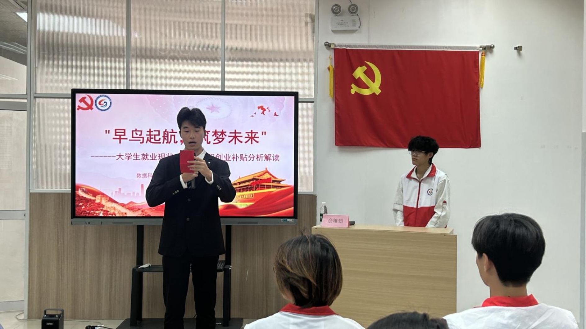 本网讯(数据科学与计算机学院党委学生第一党支部 杨奕龙)为帮助大学生提前规划,把握未来就业形势,助力大学生在挑战中发现机遇,实现更充分、更高质量的就业,2025年10月29日下午,由我校学生工作部主办,数据科学与计算机学院党委承办第六期“辅导员开讲啦”在南区“一站式”学生社区服务中心顺利开展。本次活动由数据科学与计算机学院党委组织委员兼教工党支部组织委员余雄翅老师主讲、学生第一党支部外联党小组马英才同志主持。