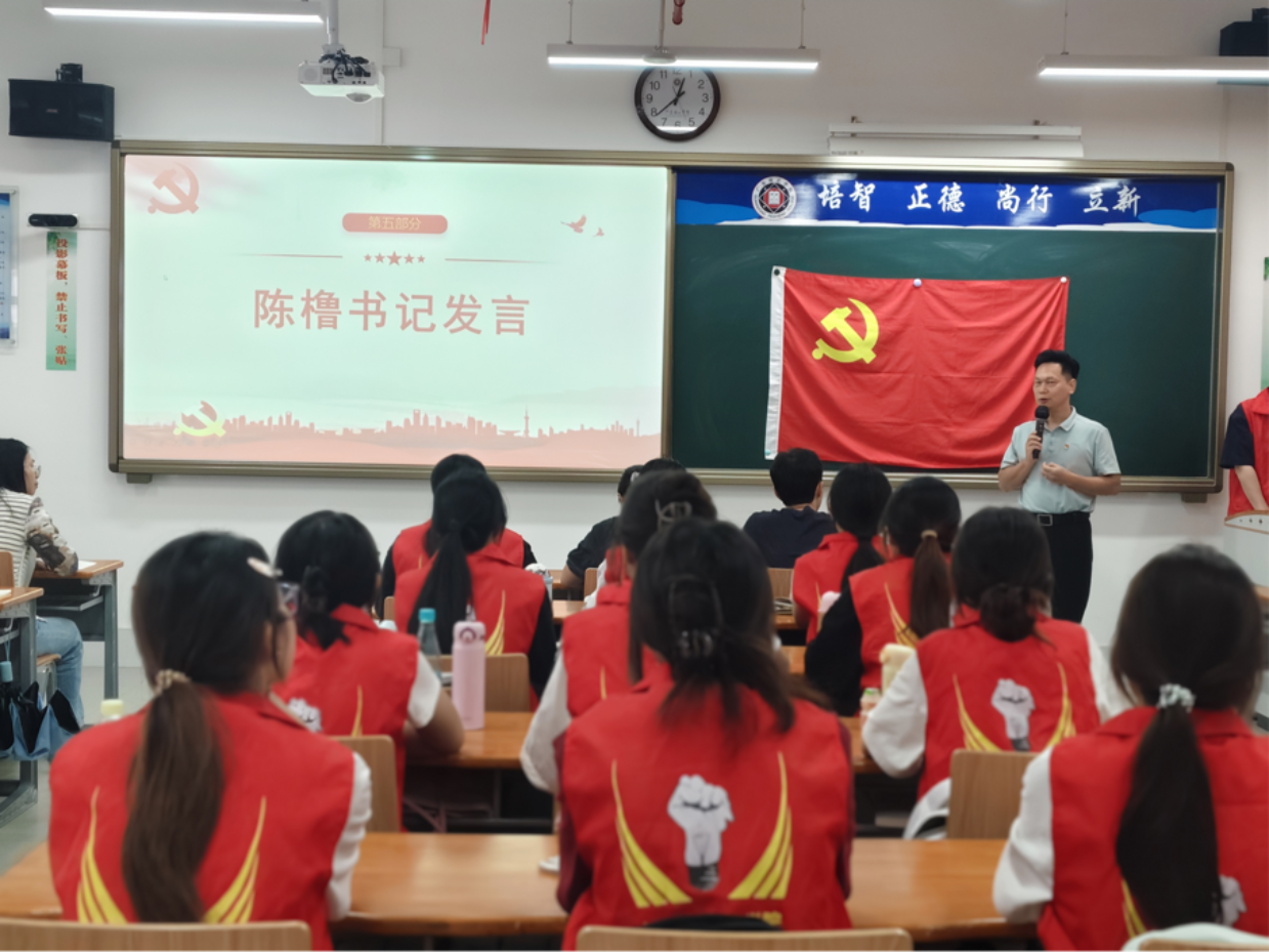 陈橹书记以“校史润心,党史励志,淬炼新时代学生骨干”为主题展开讲授。他首先带领同学们回溯中共一大的召开历程,深入解读“红船精神”的内涵,强调新时学生骨干要做“红船精神”的坚定信仰者和积极践行者,在党史学习教育中明晰使命传承脉络。