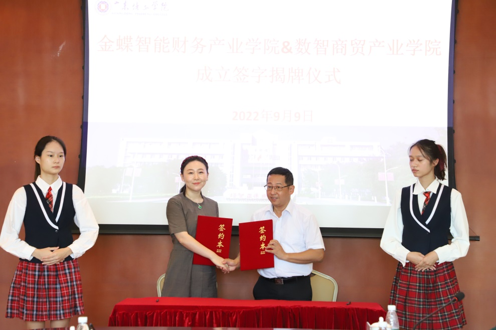 我校举行金蝶智能财务产业学院、数智商贸产业学院成立签字揭牌仪式