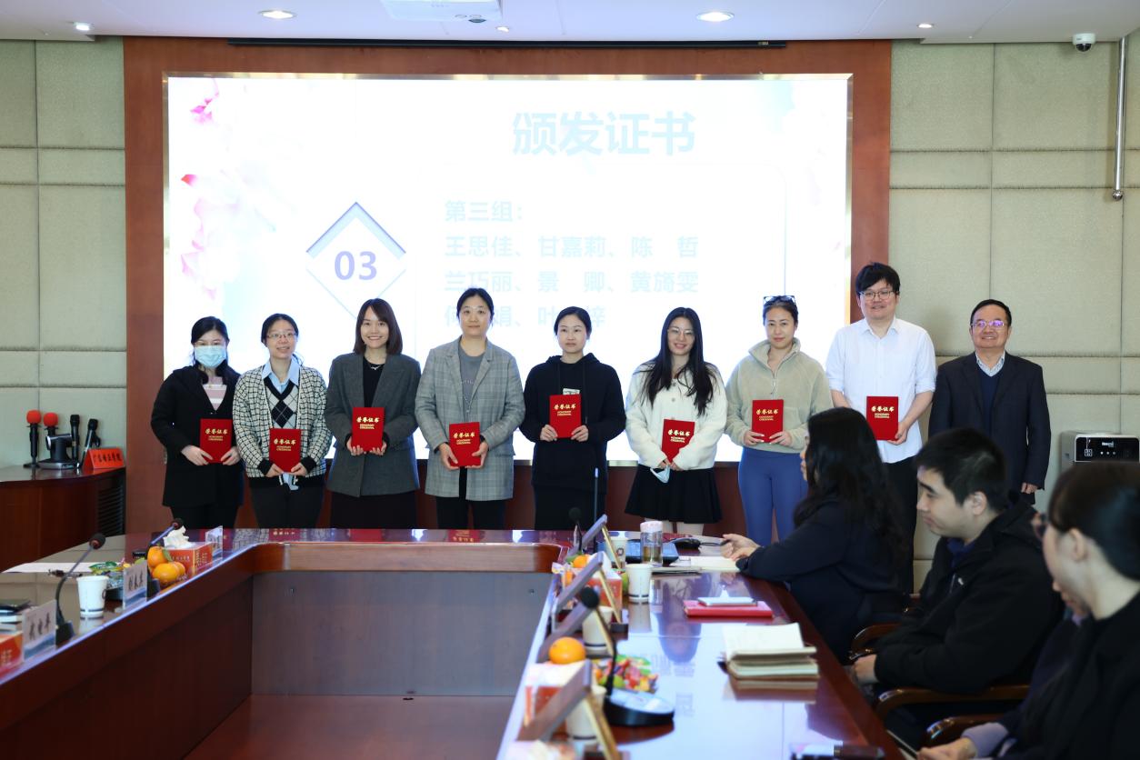 随后,与会领导为获得表彰的教职工颁发了荣誉证书和奖品,并合影留念。