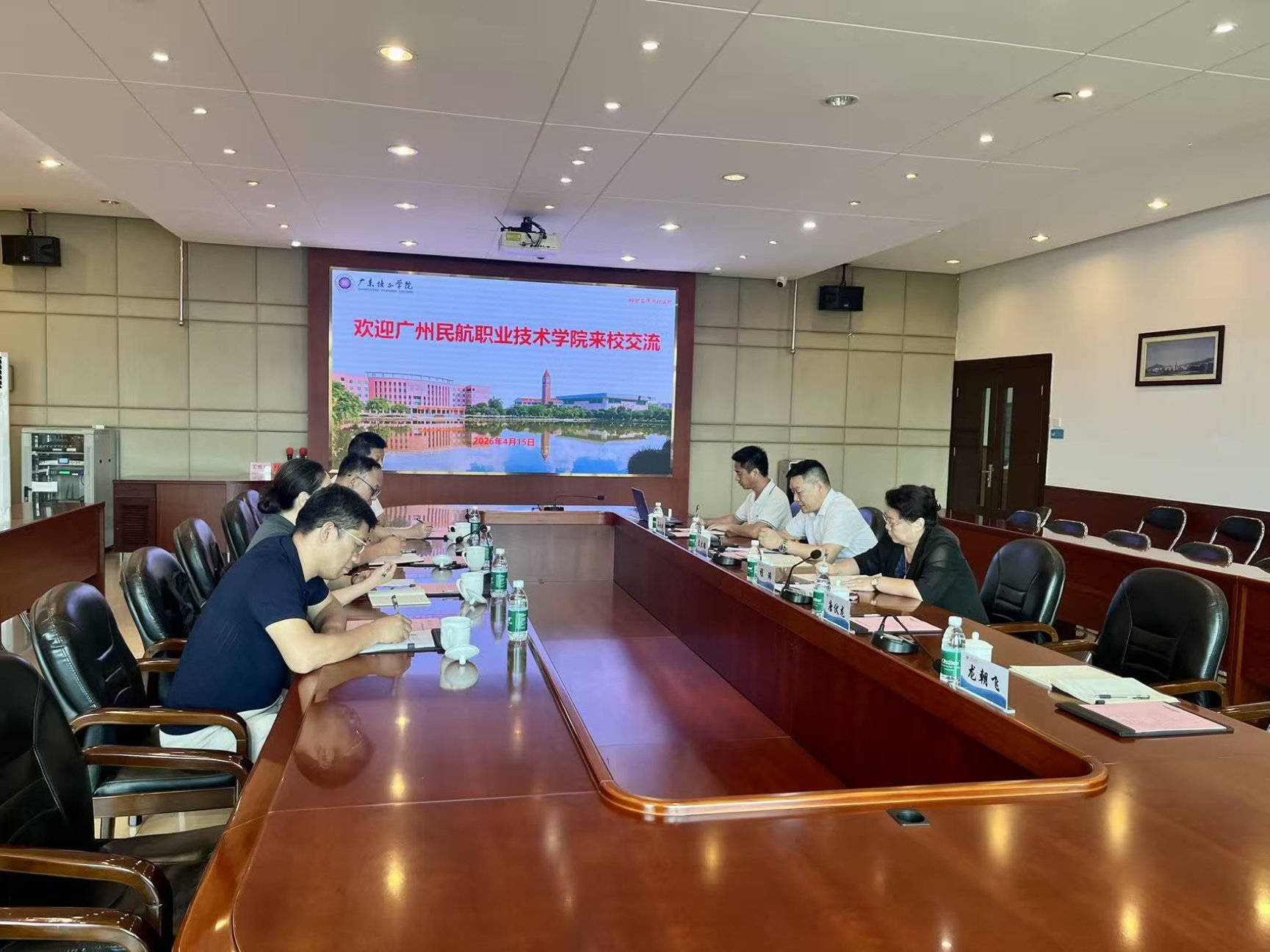 本网讯(总务处 吴赵斌)2026年4月15日,广州民航职业技术学院校领导余晓阳一行到访我校,就后勤服务保障工作进行专题交流。我校副校长程玮、总务处处长兰大鹏、保卫处处长唐伏龙等热情接待来访嘉宾,全程参与座谈与实地考察。